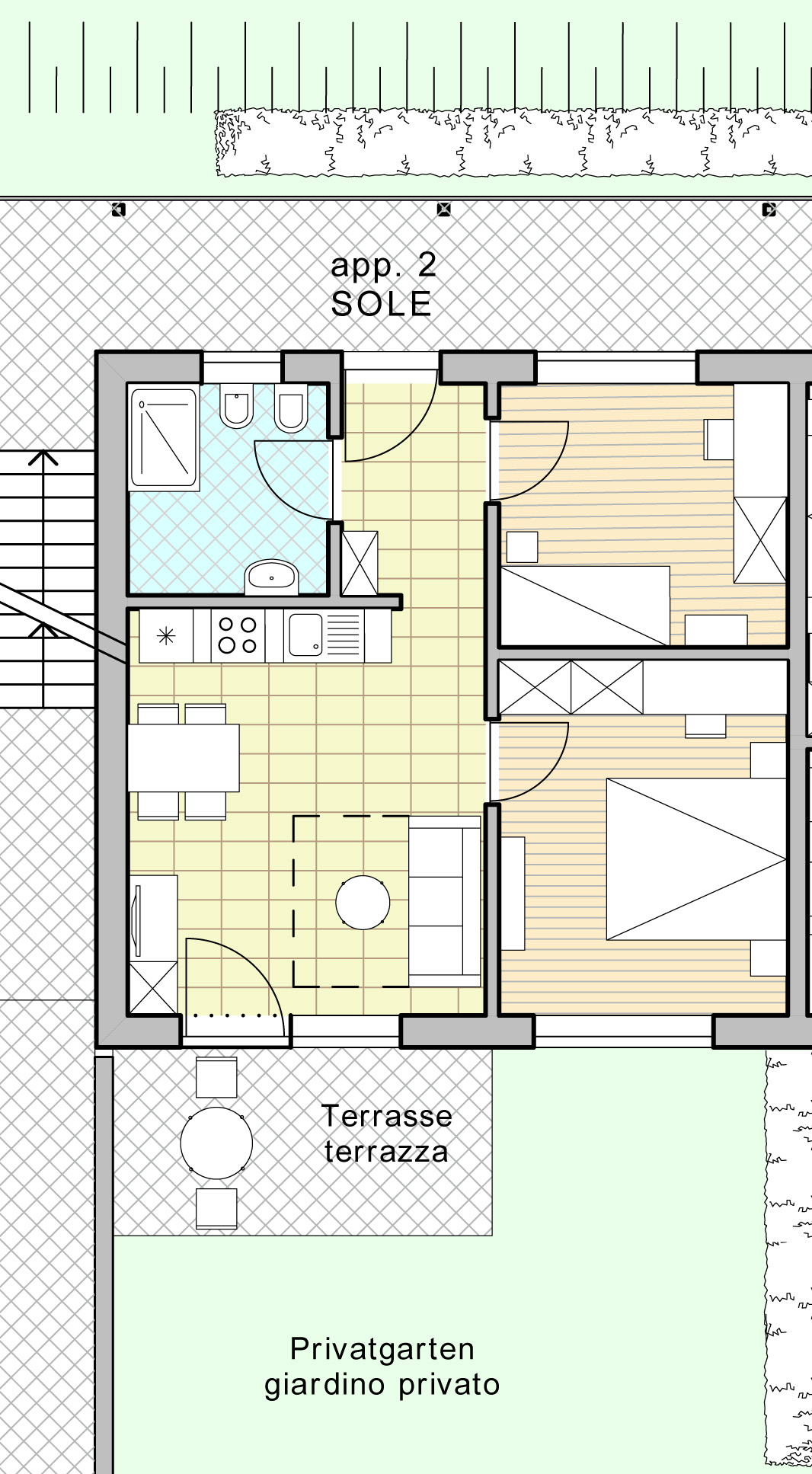 - Terasse (möbliert) zum Privatgarten
